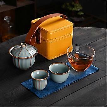 Ceramic Travel Tea Set with Ruyao Teapot and Cups, One Pot Two Cups, Gift Set with Storage Bag
