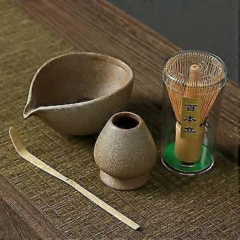 Handmade Japanese Matcha Tea Set with Coarse Pottery Bowl Whisk Scoop for Traditional Ceremony