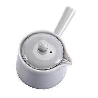 Japanese Handmade Side Handle Teapot with Ice Grey Glaze and Porcelain Tea Cup Gift Set
