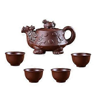 Handmade Purple Clay Teapot Kung Fu Tea Set with Four Cups Keeps Tea Fresh Creative Design