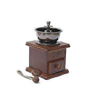 Vintage Manual Coffee Grinder with Burrs, Hand Crank Wood and Iron Mill for Home Brewing