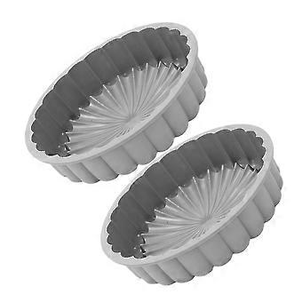 2pcs Silicone Cake Mold Set Gray Fluted Round Pan Nonstick Food Grade Temperature Resistant