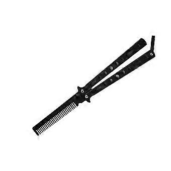 Stainless Steel Butterfly Comb Foldable Balisong Comb for Hair Styling and Salon Training Black