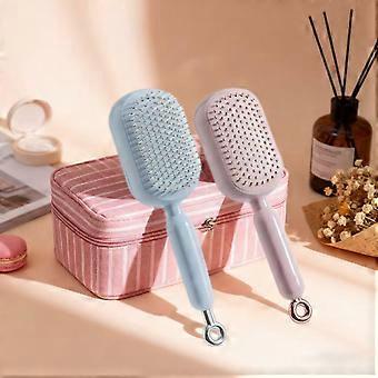 Self Cleaning Detangling Hair Brush with OnePull Hair Release and AirCushion Massage for Wet and Dry Hair (Pink Blue)