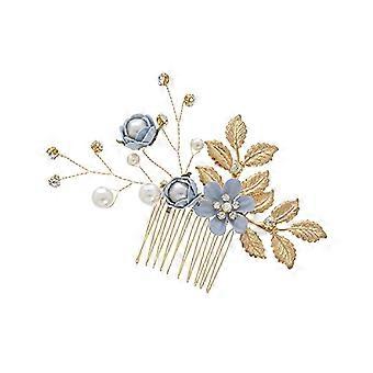 Blue Rhinestone Pearl Bridal Hair Comb with Elegant Floral Design for Wedding Hair Accessories