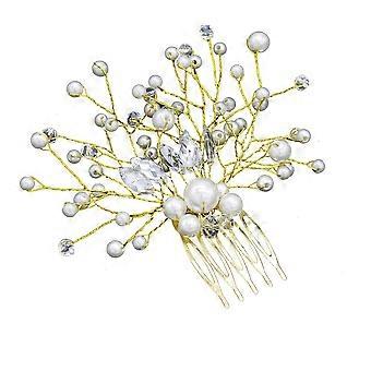 Gold Crystal Bridal Hair Comb with Elegant Pearl Embellishment for Bride Wedding Hairstyle
