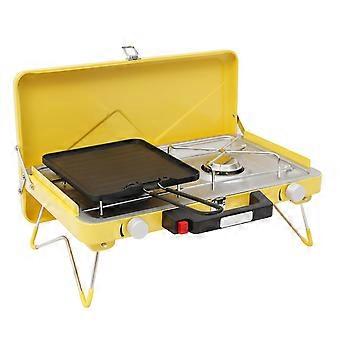 Portable Propane Camping Stove 2Burner with Wind Guards and Adjustable Starter for BBQ Picnic Yellow