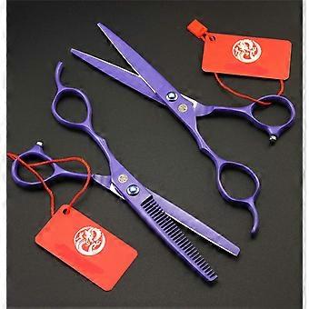 Left Handed Hairdressing Scissors Set 6 Inch Stainless Steel Barber Cutting and Thinning Shears Purple