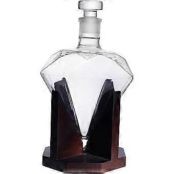 Whiskey Decanter 800ml Lead Crystal Glass with Airtight Geometric Stopper Diamond Cut