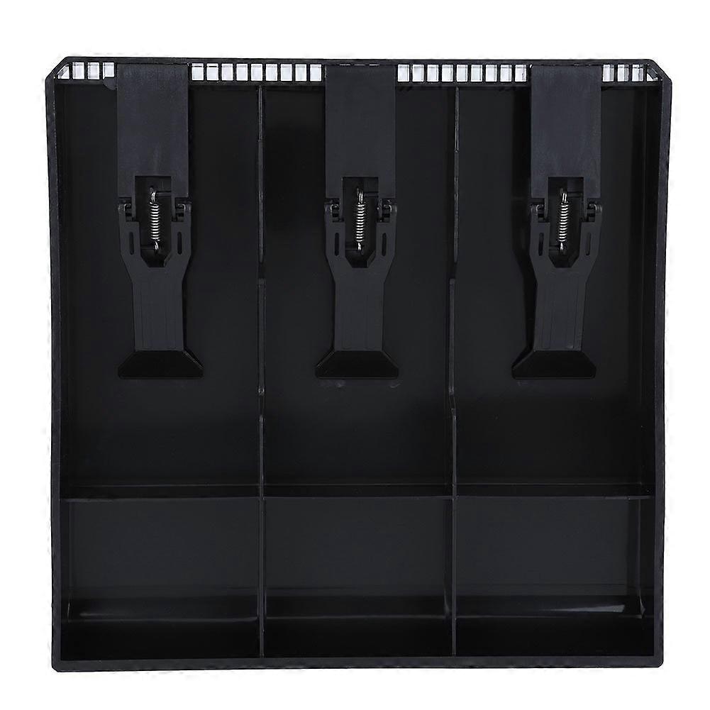 Cash Compartment Drawer Storage Box, Plastic Coin and Bill Organizer, 9.6 x 9.6 x 1.4 Inches, Black, 3 Compartments