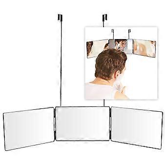 Self Hair Cutting Mirror 3 Way 360° Trifold with Adjustable Hooks Real Glass for Grooming and Travel