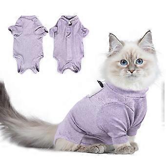 Cat Recovery Suit with Long Sleeves for Surgery, Breathable Cotton AntiLick Bodysuit, Purple M