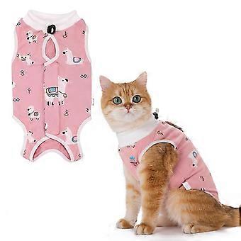 Cat Recovery Suit After Surgery Breathable Soft Fabric PostOp Cat Surgical Onesie M Pink Alpaca Pattern