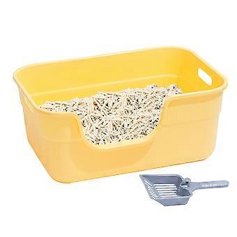 High Sided Cat Litter Box for All Cat Litter Types, Yellow, Lowered Front Design, Size Small