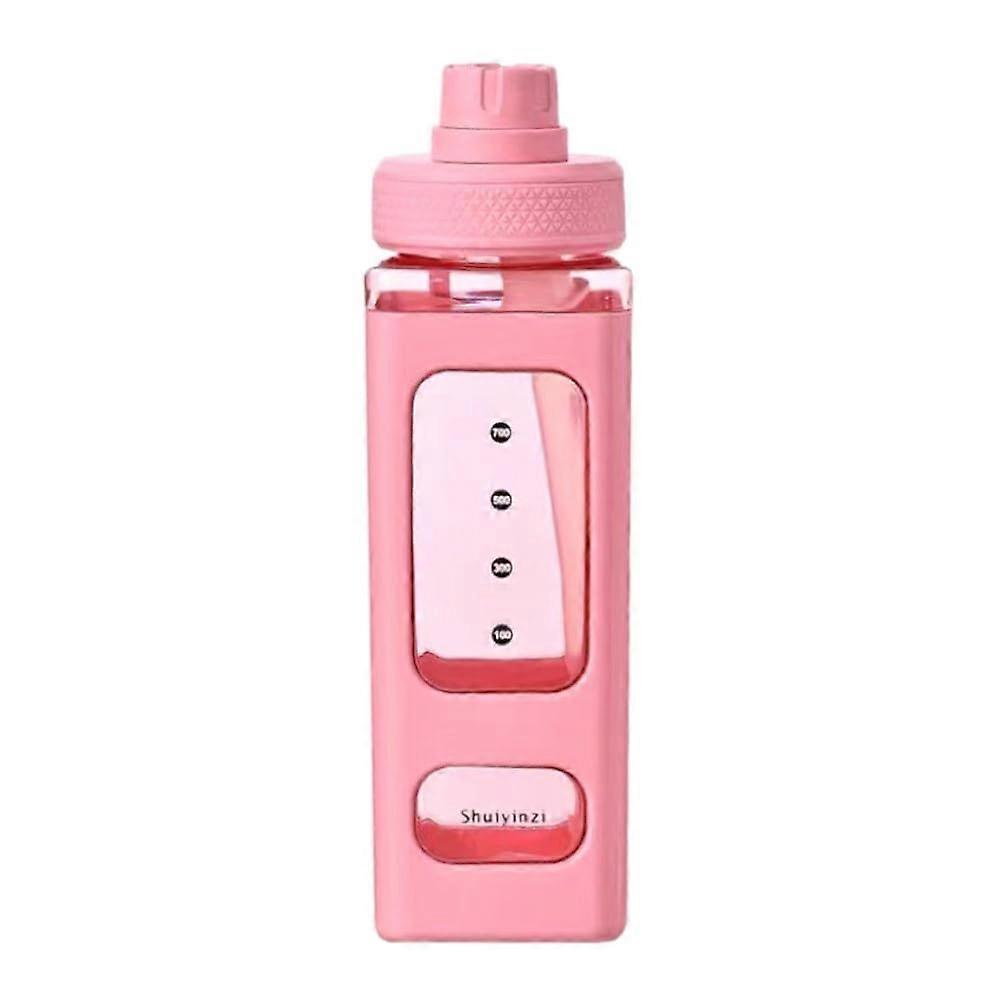 Kawaii Water Bottle with Straw, 700ml Pink Plastic Drinkware, Includes Free Square Cup, Cute 3D Stickers
