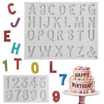 2PCS Silicone Alphabet Number Molds AZ 09 Easy Release for Cake Chocolate Candy Crafts