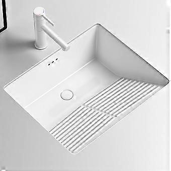 Ceramic Laundry Sink with Washboard, White Undermount Utility Sink for Bathroom and Laundry Room, 48.5x40.5x18cm
