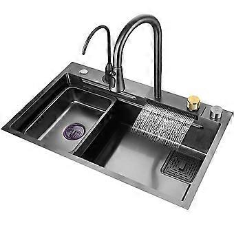 304 Stainless Steel Undermount Kitchen Sink with Faucet, Black 75x45x22cm, Rust Resistant Deep Bowl