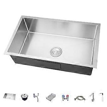 Stainless Steel Single Bowl Kitchen Sink with Drain Kit, Handmade Brushed Finish, 72x45cm