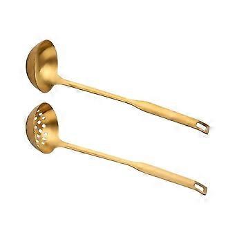 Gold Stainless Steel Soup Ladle Set 2Piece Long Handle Hot Pot Utensils with Comfort Grip