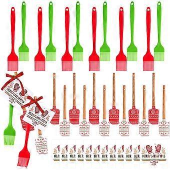 Christmas Kitchen Utensils Set with Silicone Spatula and Brush, Wooden Handle, Greeting Cards, Festive Red and Green