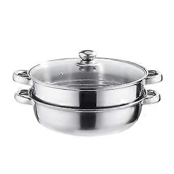 26CM Stainless Steel Steamer Pot with Glass Lid, 3Tier Stockpot for Even Cooking