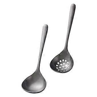 Stainless Steel Soup Ladle and Slotted Skimmer Spoon Set with Long Handle and Grease Separation