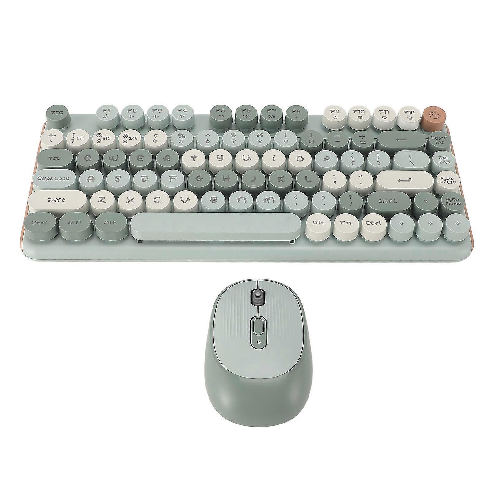 Keyboard Mouse Combo 2.4G Wireless Bluetooth Double Modes 82 Keys Low Noise Keyboard Mouse Set for Office Gaming Green
