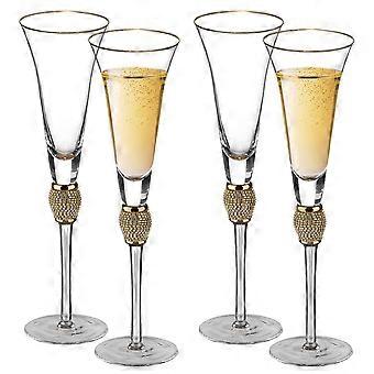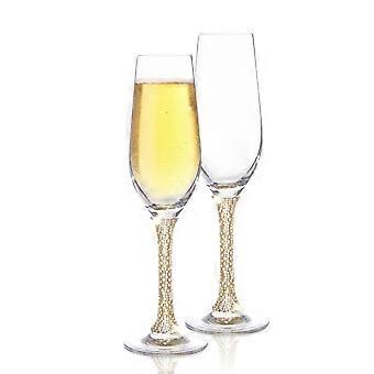 Crystal Champagne Flutes with Gold DiamondStudded Stem, Elegant Lead Crystal, Set of 2, 8oz