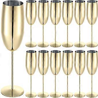 Stainless Steel Champagne Flutes Set 12pcs Gold Stemmed Unbreakable Dishwasher Safe Outdoor Ref:8555