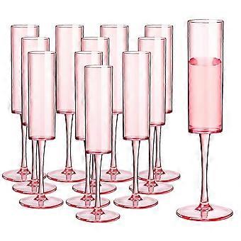 12 Pcs Pink Acrylic Champagne Flutes 5.5oz Reusable Unbreakable Glasses for Wedding Party Ref:9116
