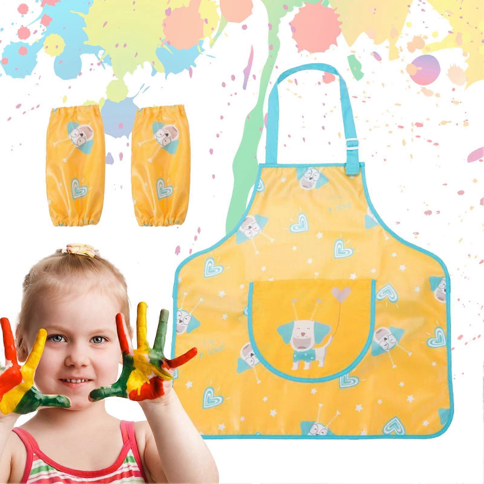 Kinder Malschrzen Waterproof Creative Apron Adjustable Craft Apron with Straps for Girls, Teens Family Yellow