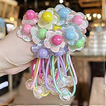 Hair Ties with Flower Beads for Girls, Soft Elastic Ponytail Holders, Durable Decorative Bands