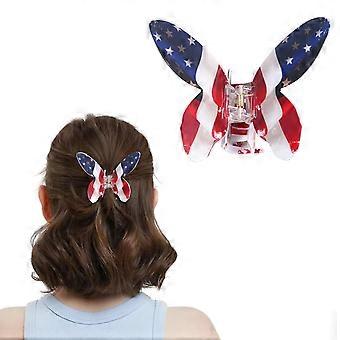 Fourth of July Butterfly Hair Claw Clip with American Flag Design for Women, Red White Blue Accessory