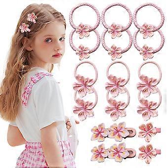 Cherry Blossom Hair Accessories Set for Girls, 16PCS Pink Sakura Ties and Clips, Spring Wedding