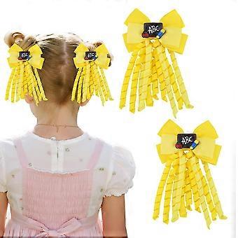 Back to School Hair Bows Set for Girls, Yellow Leather SchoolThemed Clips for Preschool Kindergarten