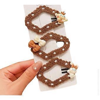 Brown Crochet Hair Clips Set with Bows and Animal Charms for Girls Hair Accessories, 3 Pack
