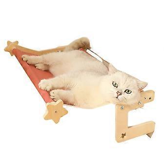 Wooden Cat Hammock with Sisal Scratching Board, Ergonomic Lounger for Indoor Cats, Durable Frame
