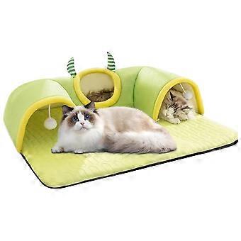 Large Breathable Cat Tunnel Bed for Indoor Cats and Dogs with Ventilation Design, Green