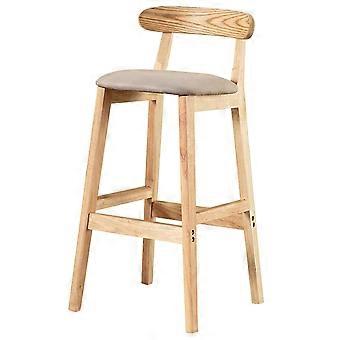 Kitchen Barstools Solid Wood Bar Chair Modern Restaurant Counter Stool With Backrest And Removable Cushion Khaki 82 cm