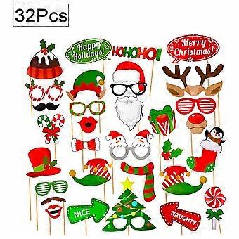 Minglan 32pcs Christmas Photo Booth Props Kit Photography Party Decorations Gifts Fun Santa Selfie Posing Signs DIY Craft Backdrop Accessories For Bir