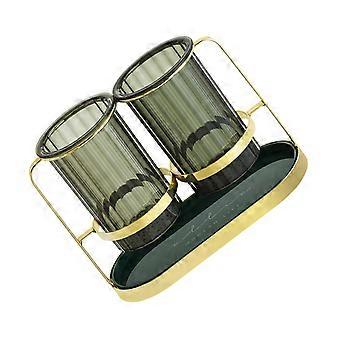 Kitchen Utensil Holder Double Tube with Fast Drainage, Multipurpose Cutlery Organizer Golden Green