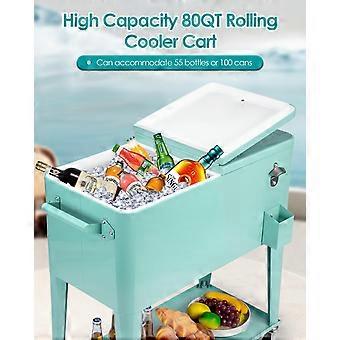 80 Quart Outdoor Rolling Cooler with Wheels, Mint Patio Ice Chest Cart with Bottle Opener for BBQ and Camping