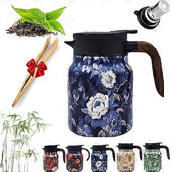 Vintage Floral Stainless Steel Insulated Teapot with Infuser 1000ml Leak Proof Long Heat Retention