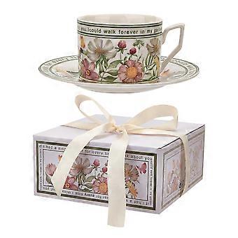 Tea Cup Set Bone China Floral with Plate Elegant Nordic Design for English Afternoon Tea