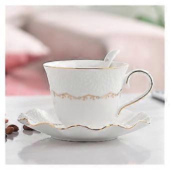 Bone China Coffee Cup Set with Saucer and Spoon, Vintage Luxury European Style Tea Set