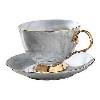 Ceramic Coffee Cup and Saucer Set, Vintage Nordic Marble Design Mug for Home and Office