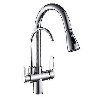 3 Way Pull Out Kitchen Mixer Tap with Water Filter Brushed Nickel Dual Spray Modes
