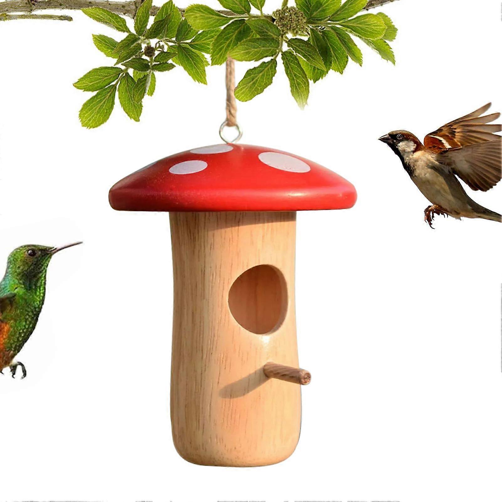 Kolibrihaus, Hanging Bird Nest Box, Wooden House With Mushroom Hat Design Decor For Garden, Balcony, Terrace Outdoor Area Red A