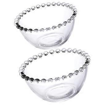 2Pcs Clear Glass Fruit Salad Bowls with Delicate Beaded Edge for Dessert and Kitchen Serving